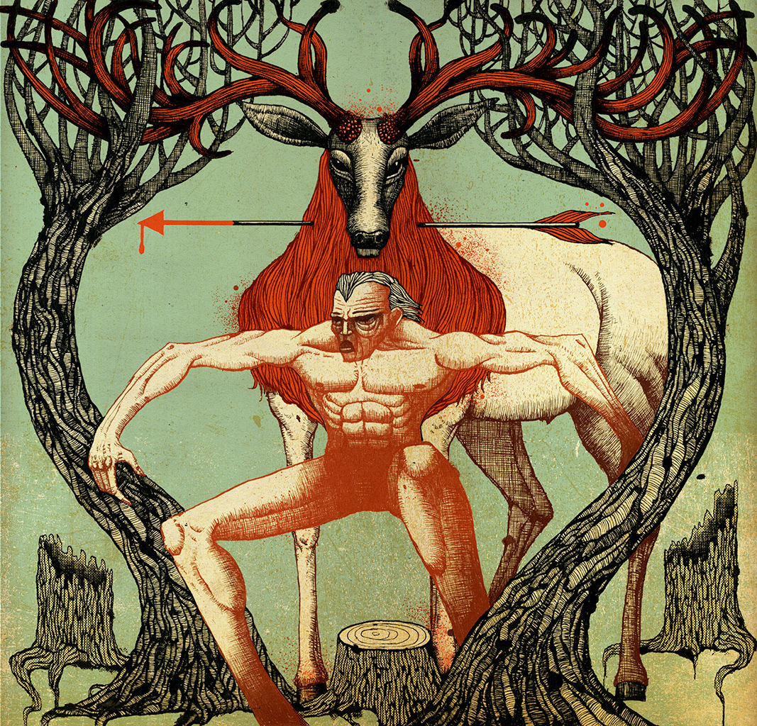 Illustration for the North American Review. It is a powerful story about the death of a son and how a hunting trip helps the father cope.