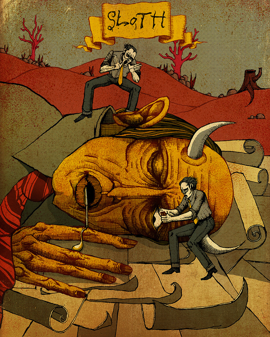 I was approached by the good folks over at Funworks to produce 7 posters for their client Domo. The posters would represent the 'Seven Deadly Data Sins'. Each poster was printed 8 feet by 12 feet tall and displayed at a Domo event the week of November 7th 2016 ( Snoop Dogg was there!) and also on the Domo Microsite.