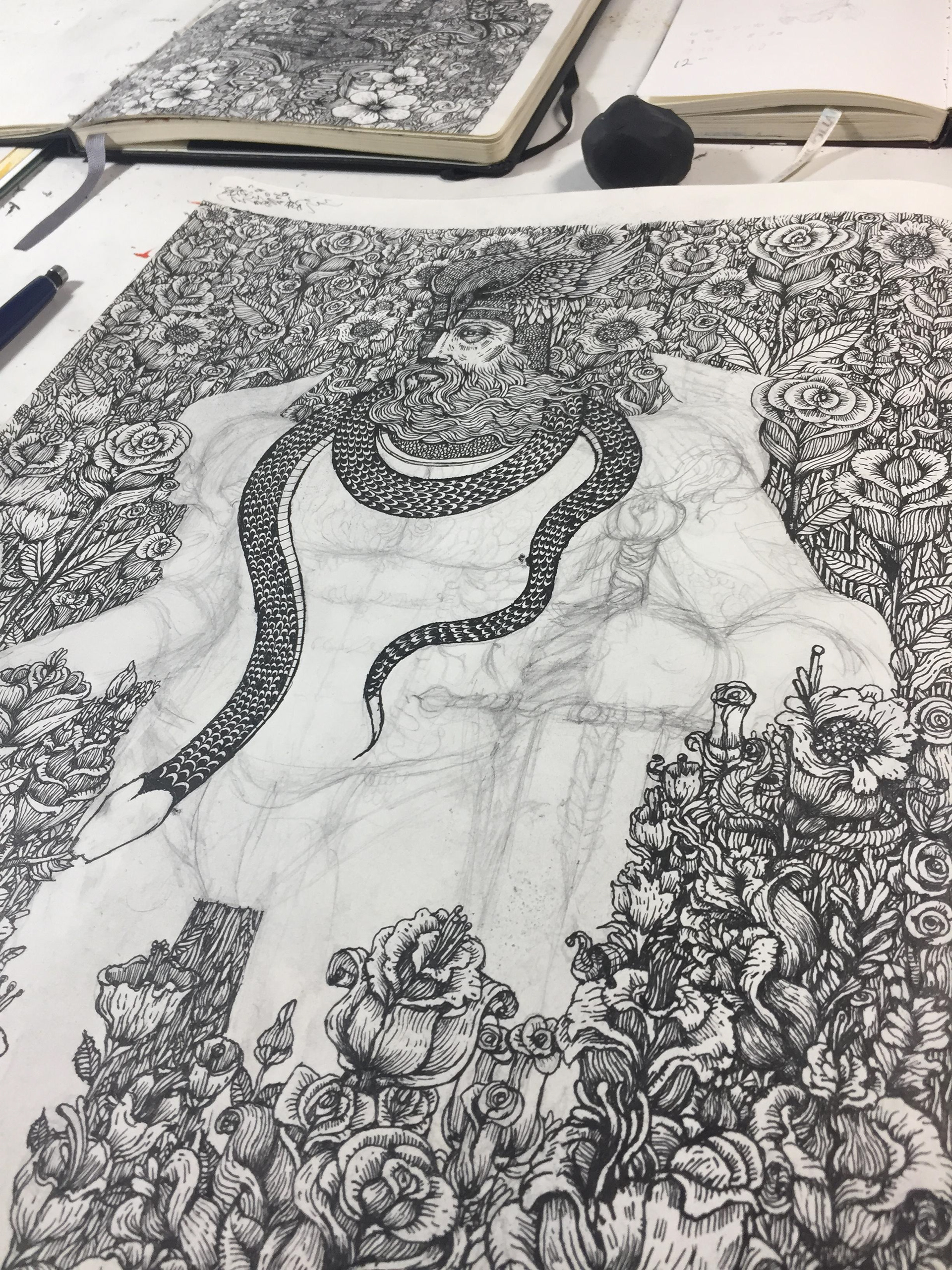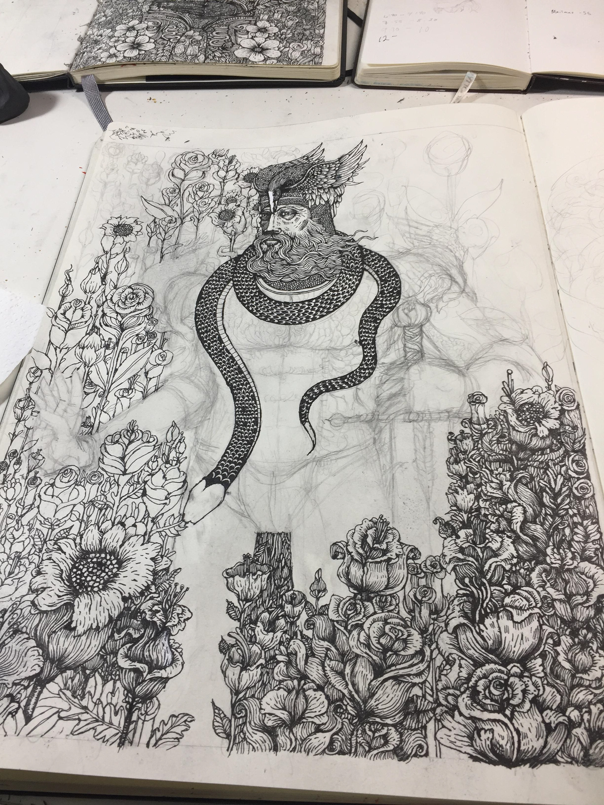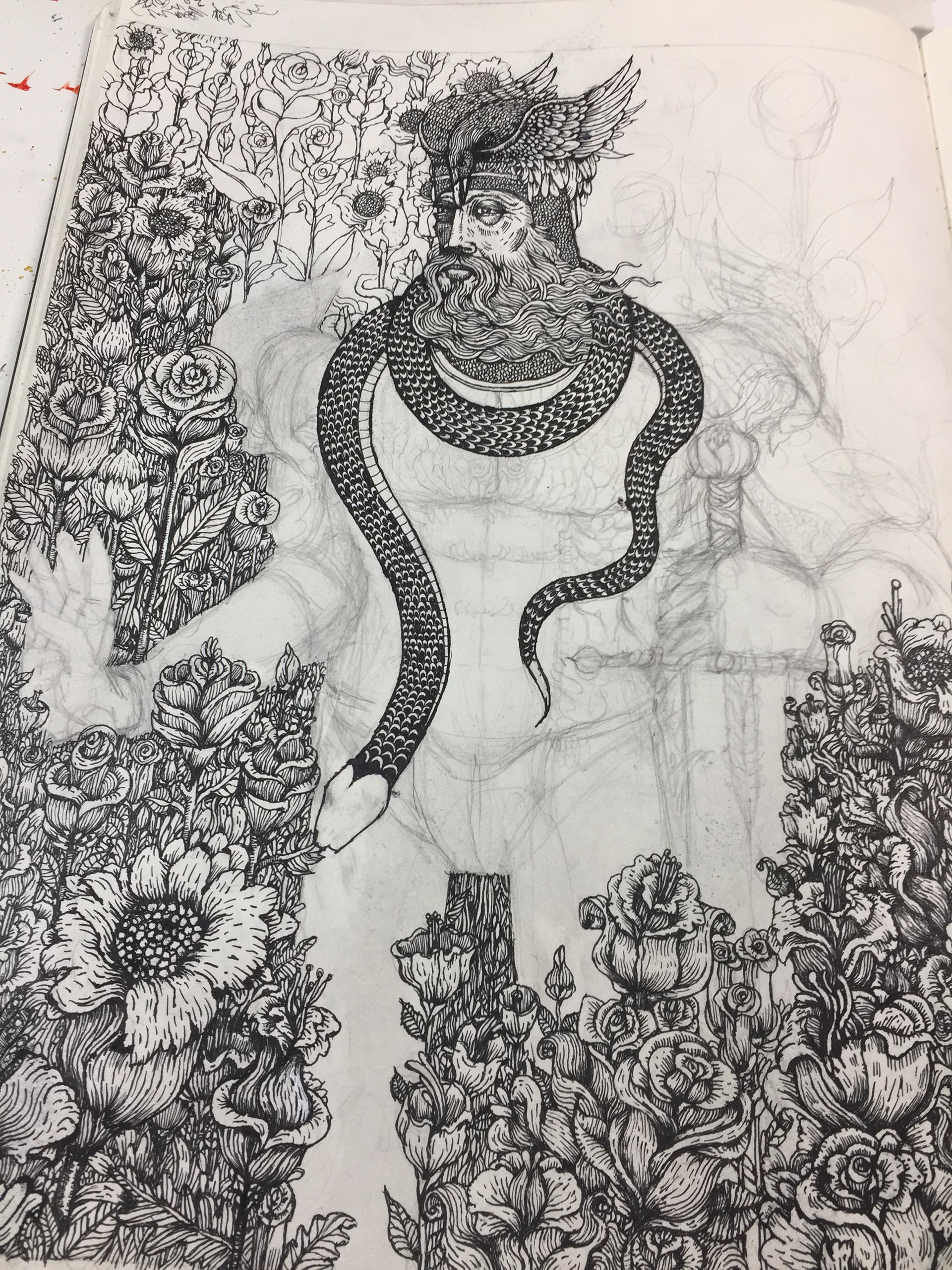 Drawing Process of my 'Mystery Garden' illustration for Society 6's No. 4.2 + Flipside Mystery Garden Edition of their Art Quarterly Magazine.