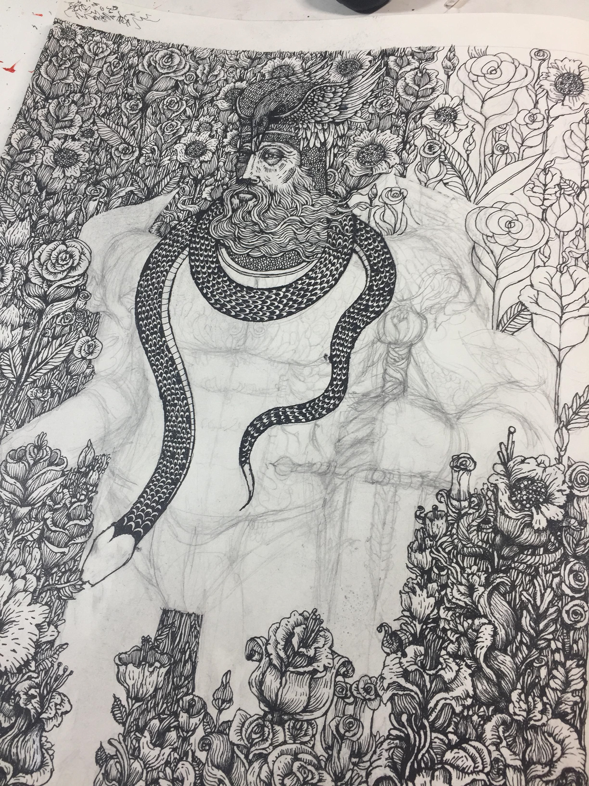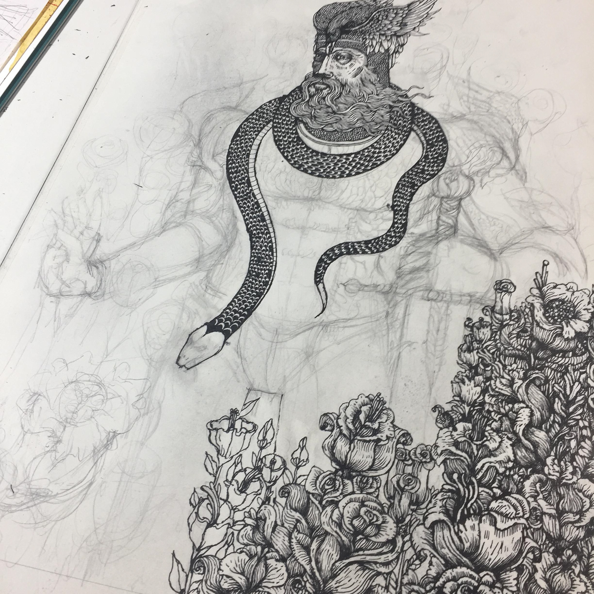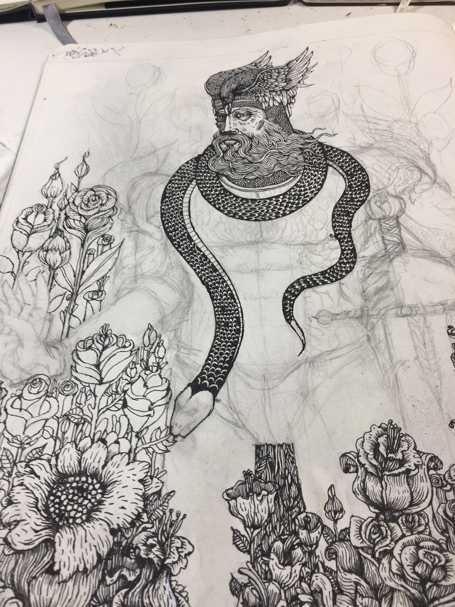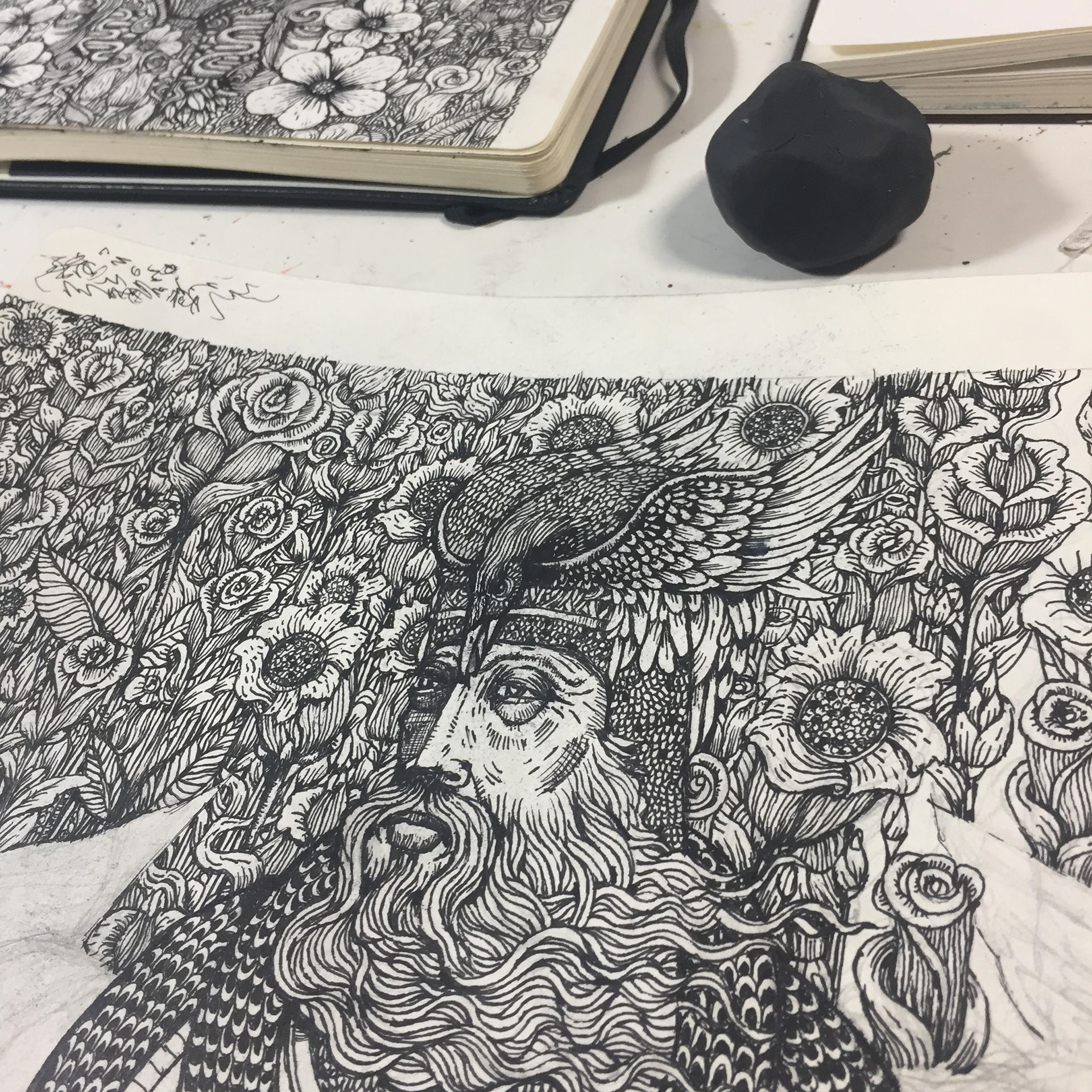 Drawing Process of my 'Mystery Garden' illustration for Society 6's No. 4.2 + Flipside Mystery Garden Edition of their Art Quarterly Magazine.